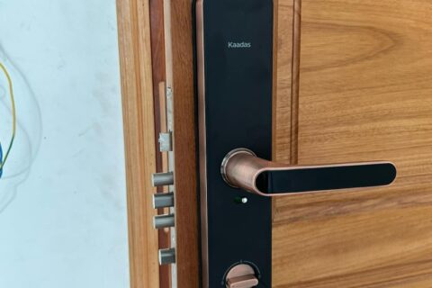 Hình ảnh lắp đặt thực tế khóa cửa vân tay cao cấp đã hoàn thiện